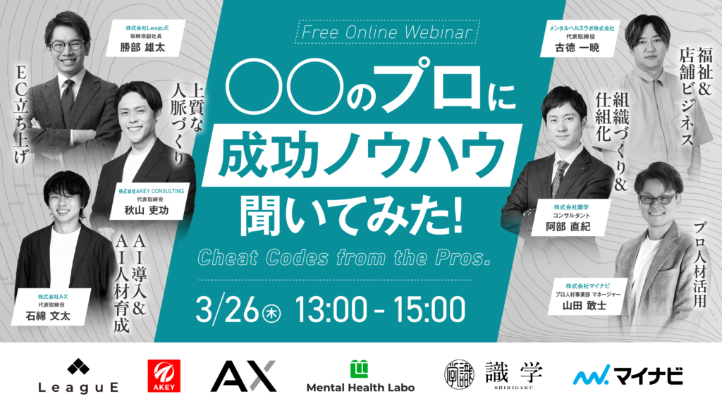 【3月26日(木)13:00-15:00開催】 ”〇〇のプロ”に 成功ノウハウ聞いてみた!
