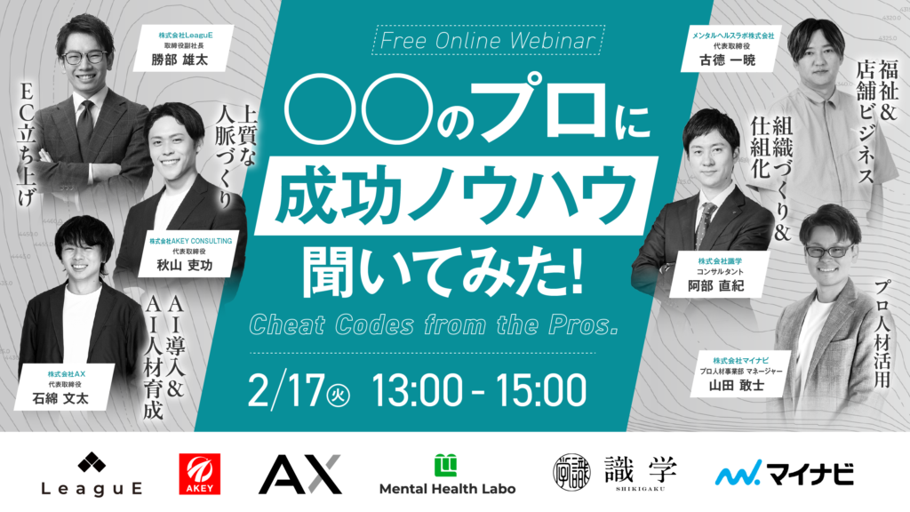 【2月17日(火)13:00-15:00開催】 ”〇〇のプロ”に 成功ノウハウ聞いてみた!