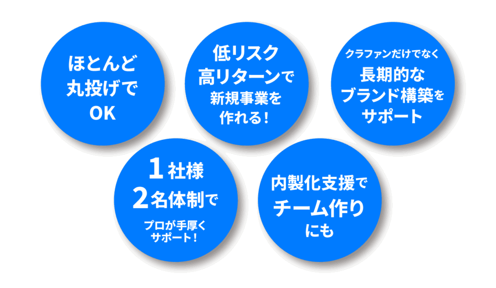 物販支援プロジェクトではクラウドファンディングを活用することで、一般的な新規事業とは違い、低リスク・低資金で新規事業を立ち上げることが可能になります。