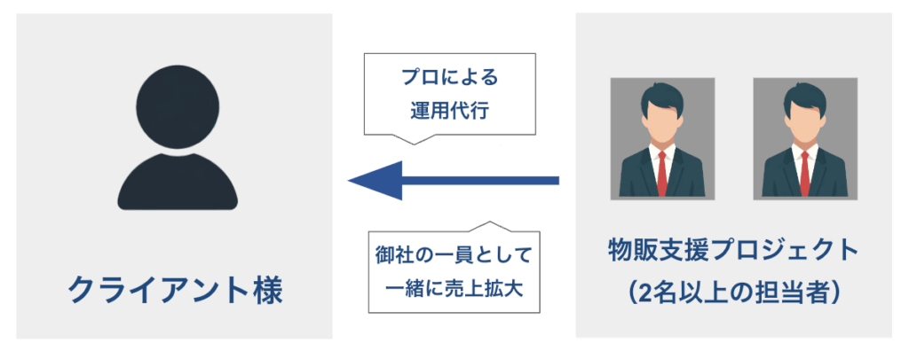ご契約から最短1週間で運⽤代⾏を開始いたします。ご契約者さまの売上拡⼤にコンサルティングをはじめとした、すべてのことに着手します。